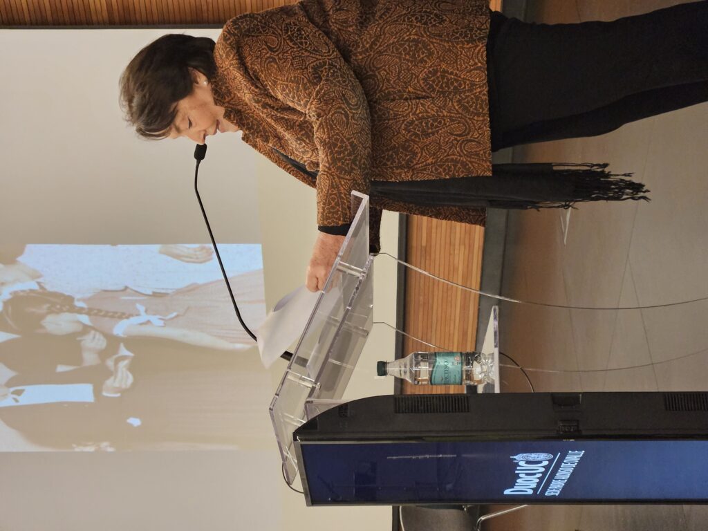 Durante la ceremonia, María Eugenia Carbone, presidenta del Directorio de la Fundación Hogar Catequístico, ofreció una semblanza sobre la vida y legado de Elisa Valdés, destacando su dedicación a la educación religiosa y su ejemplo de servicio.