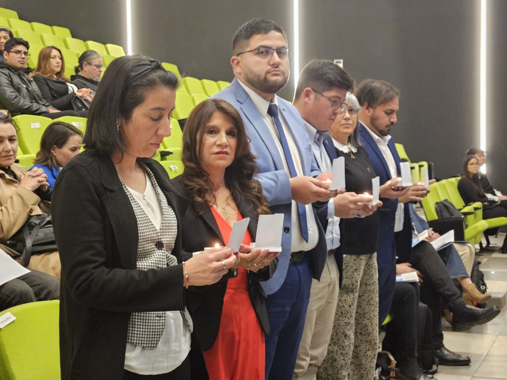 El acto se realizó en el Auditorio de DUOC UC, sede Alonso de Ovalle, y fue dirigido por Roberto Ríos, Director de Identidad y Cultura de DUOC UC. La jornada contó con una gran participación y momentos de profunda emoción espiritual, marcados por la lectura de la oración “Pequeña Lámpara”, interpretada por Mónica Hernández, Pro Secretaria General de la Universidad Católica del Maule.