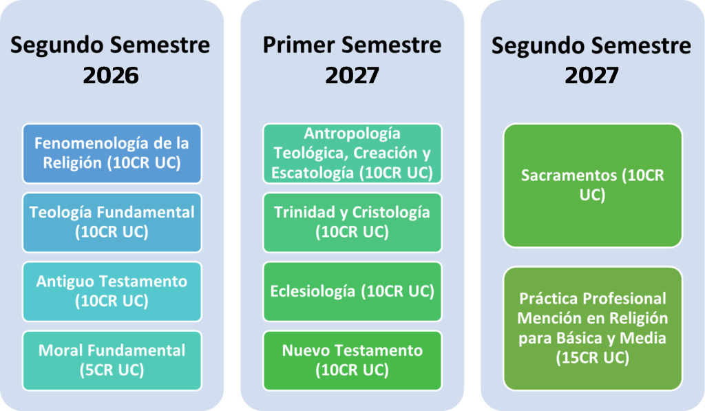 Está orientado a la formación de docentes que requieren contar con la mención disciplinaria en la asignatura de Religión, tanto para la Enseñanza Básica como para Enseñanza Media, ofreciendo una formación alineada con las Bases Curriculares de Educación Católica 2020 y respondiendo a los desafíos educativos actuales.